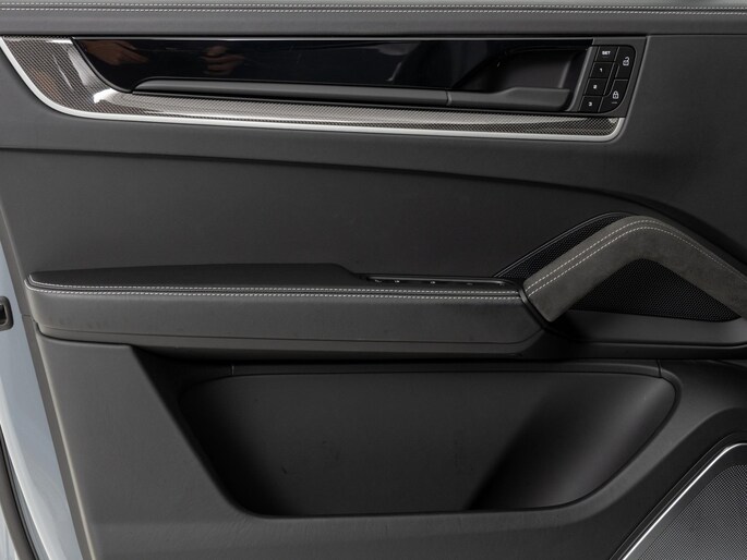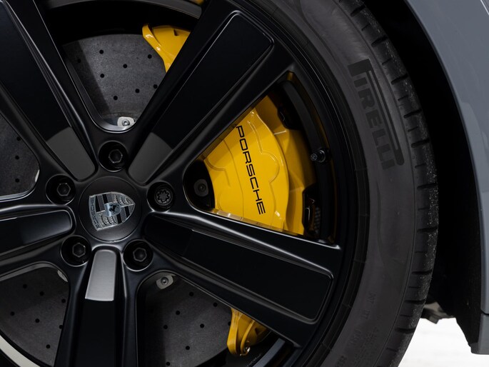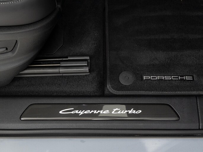 Deze Porsche Cayenne Turbo E-Hybrid in de kleur Arctic grijs heeft slechts 18.810 kilometers gereden. De Porsche onderscheidt zich onder andere door unieke opties, zoals; Burmester® 3D High-End Surround Sound System, Achterasbesturing, Porsche Ceramic Composite Brake (PCCB) met gele remzadels en Porsche Dynamic Chassis Control (PDCC). Uiteraard is dit exemplaar nog verder te verfraaien door hoogwaardige accessoires van Porsche Tequipement.