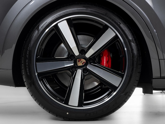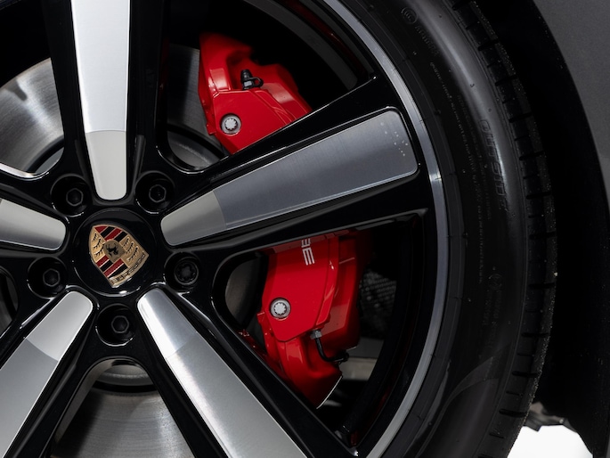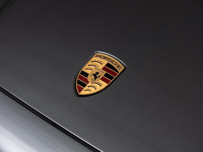 - ‘PORSCHE’ logo in hoogglans zwart gespoten en modelaanduiding in exterieurkleur gespoten (YAW)