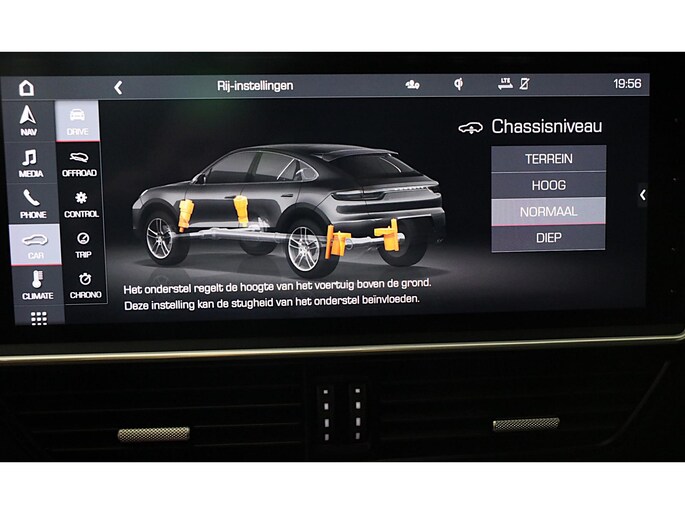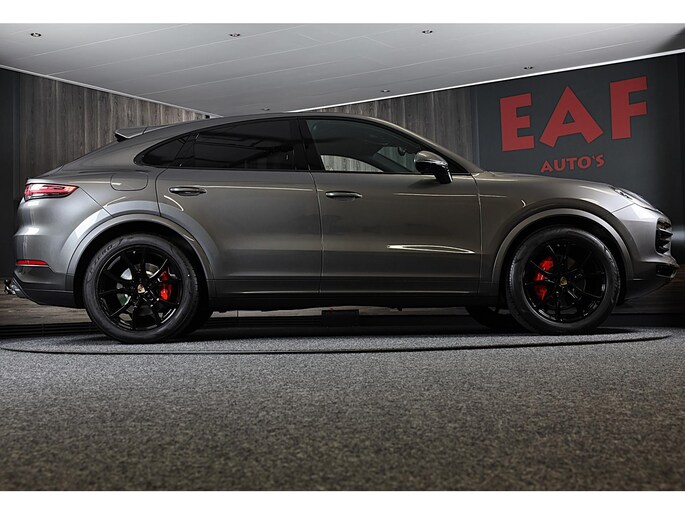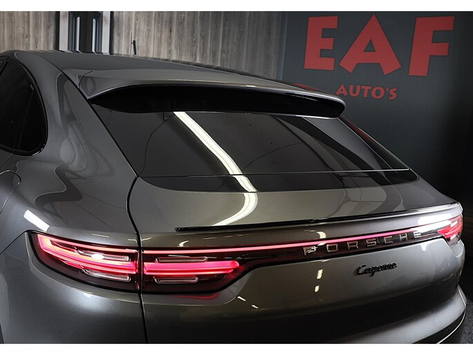Een auto als de Porsche Cayenne Coupé biedt een dynamiek en comfort die typerend zijn voor de producten van de Duitse autofabrikanten. De uitstekende prestaties van deze auto komen van de zescilinder motor en de automatische transmissie. Wel eens luchtvering ervaren? Deze auto biedt elke keer een rimpelloze rit. Binnenin zien we een fraai afgewerkt lederen interieur. Neem plaats op de comfortabele stoelen. Dankzij de elektrische bediening en het geheugen is het eenvoudig om hierin de beste zitpositie te vinden. Een handige voorziening op deze auto is de elektrische achterklep die u op afstand kunt openen. Het verfijnde karakter van deze open auto komt ook tot uiting in het elektrisch bedienbare cabriodak. Vergezichten krijgen een extra dimensie door het glazen panoramadak. In deze auto profiteert u onder andere ook van: 21 inch lichtmetalen velgen, LED koplampen, warmtewerend glas, trailer assistent, zwarte hemelbekleding en dakspoiler.