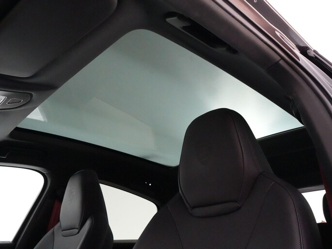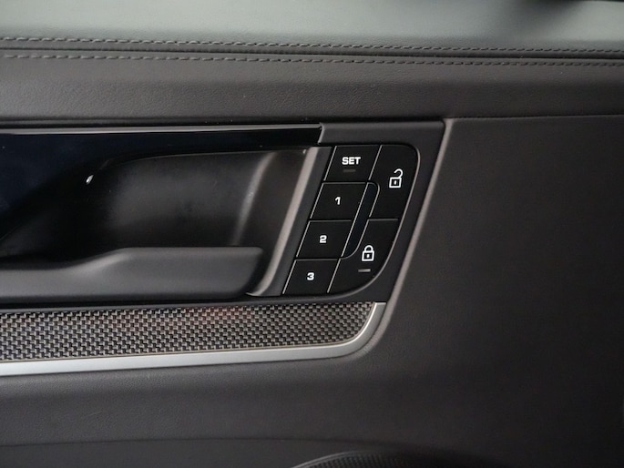 Het interieur is net zo indrukwekkend. De adaptieve sportstoelen met 18-voudige elektrische verstelling bieden perfecte steun, het carbon interieurpakket geeft de cabine een high-end motorsportlook en de bordeauxrode gordels maken ‘m helemaal af. Uiteraard voorzien van 4-zone airco, stoelverwarming én ventilatie, een verwarmbare voorruit en Soft-Close portieren. Alles klopt.