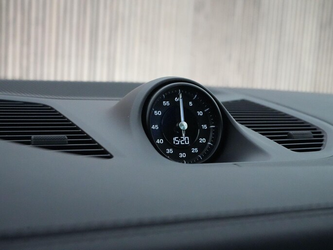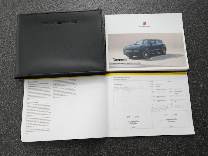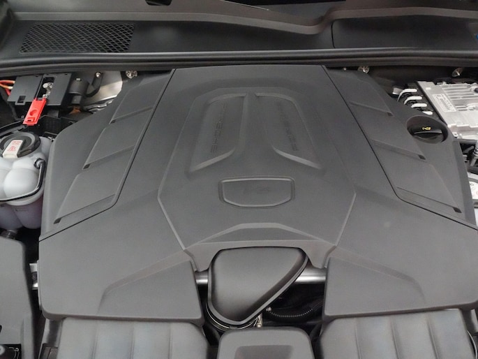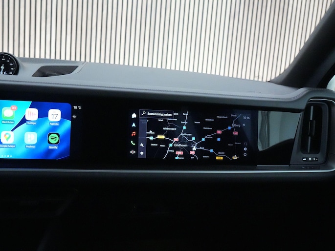 Ook het rijden is typisch Porsche. De adaptieve luchtvering met PASM zorgt voor comfort wanneer je het wilt en strakheid wanneer je het vraagt. Achterasbesturing maakt hem verrassend wendbaar, zelfs in de stad. Head-Up Display, Adaptive Cruise Control, Lane Change Assist en ParkAssist met 360° Surround View brengen veiligheid en gemak naar een hoger niveau. De sportuitlaat in donker brons geeft, wanneer de benzinemotor meedoet, precies die Porsche-sound die je zoekt.