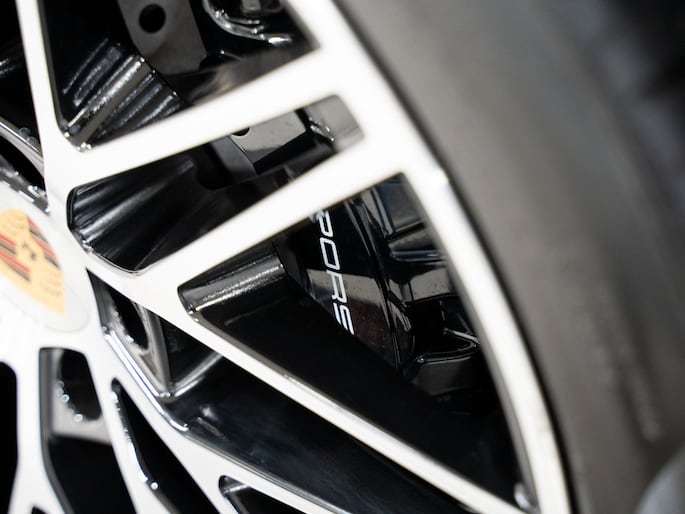 - PORSCHE logo zwart mat en modelaanduiding in exterieurkleur gespoten