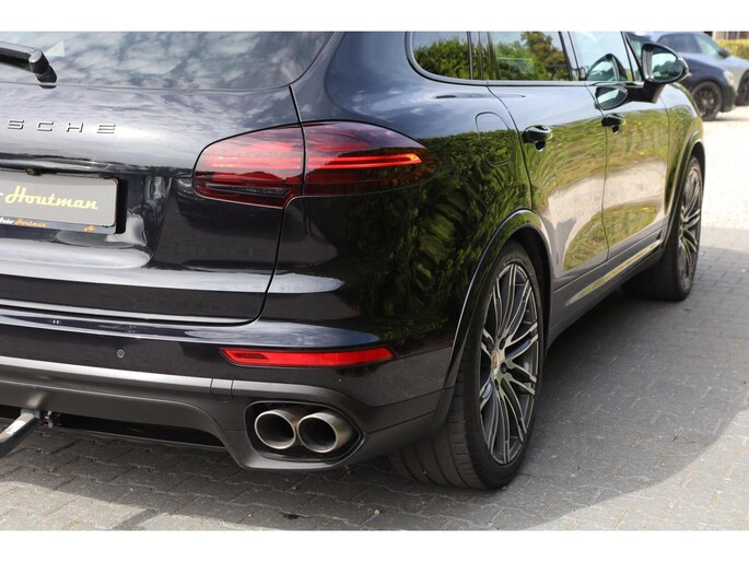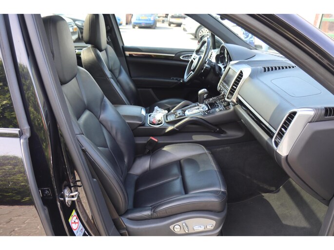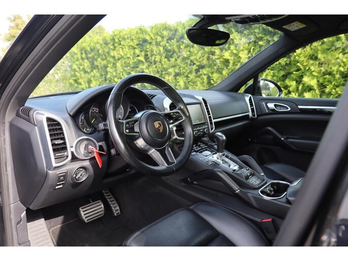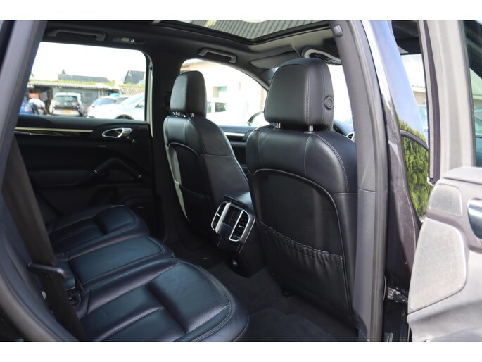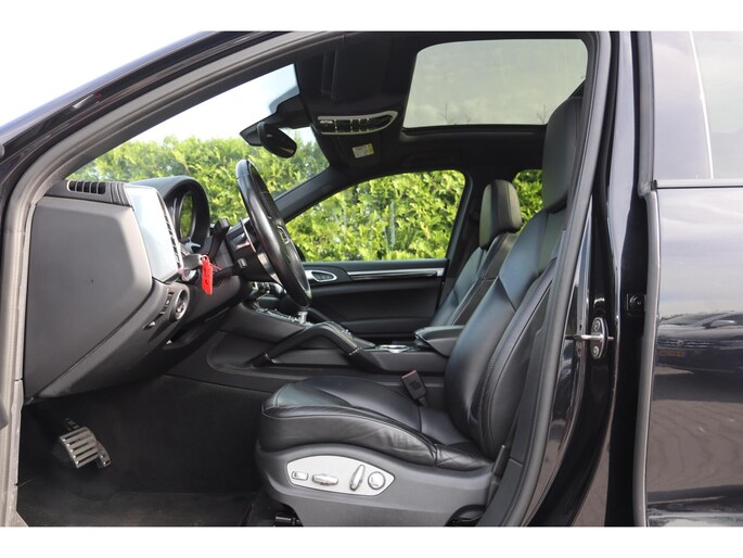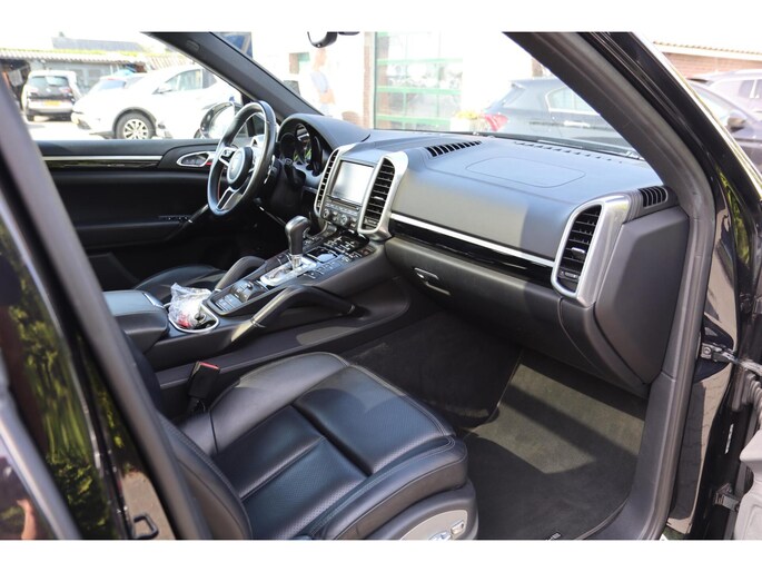 Met zijn inventieve techniek is de hybride Porsche Cayenne tegelijk comfortabel en zuinig met brandstof. Elektrisch rijden of benzine? Deze hybride Porsche Cayenne combineert de pluspunten van allebei naar keuze. Een praktische extra is de elektrisch bedienbare achterklep die opent en sluit met een druk op de knop. Door het glazen panoramadak heeft u een weidse zichthoek en geniet u van licht en een gevoel van ruimte. In het donker zorgt de xenonverlichting voor een goed zicht op de weg. Tot de uitrusting van deze Porsche behoren ook elektrisch verstelbare voorstoelen, 18 inch lichtmetalen velgen, halflederen bekleding, adaptief dempingsysteem, warmtewerend glas en elektrisch inklapbare buitenspiegels.