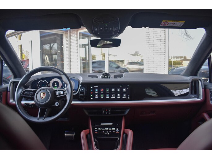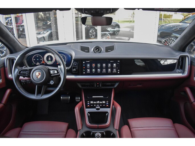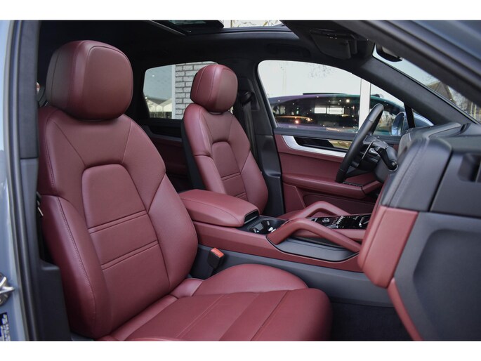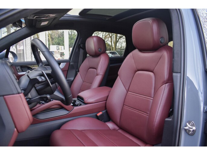- Lederen interieur in tweekleurige combinatie, glad afgewerkt leder in zwart en Bordeauxrood (QC)