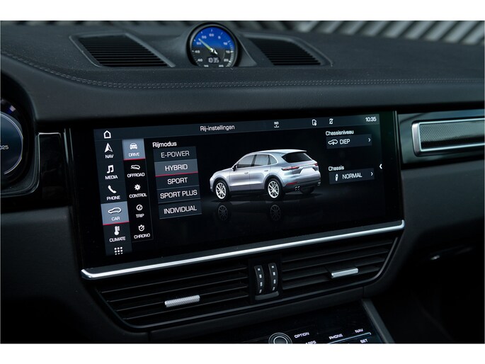 De luchtvering biedt uitzonderlijk rijcomfort en flexibiliteit. Dit systeem past de vering aan op basis van de rijomstandigheden, waardoor de Porsche Cayenne soepel en comfortabel rijdt, zelfs op ruwe wegen. Je kunt de rijhoogte van