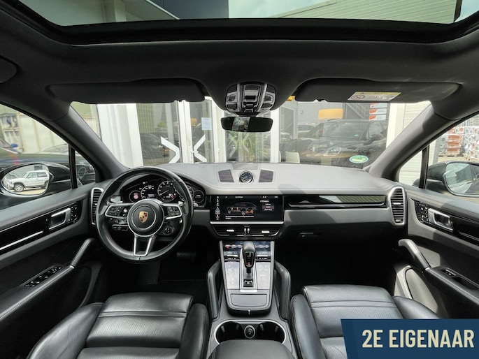 Van 2e eigenaar afkomstig; Porsche Cayenne 3.0 E-Hybrid Sport-chrono in het zwart / zwart van bouwjaar 2018.