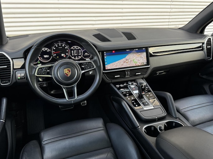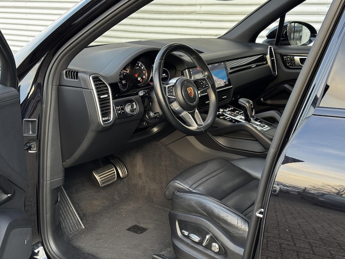 Stijlvolle Porsche Cayenne S gehuld in ‘Jet Black’ metallic met een ‘Schwarz’ lederen interieur. Een zeer bijzondere configuratie en precies zoals wij hem nieuw zouden bestellen. Aan fijne opties natuurlijk geen gebrek: 21 inch Cayenne Turbo wielen, Panoramadak, 14-weg stoelen, Bose audio, Trekhaak, Luchtvering, 360 graden camera, Soft Close, Verwarmd stuurwiel, Stoelverwarming voor & achter, Cruise Control adaptief en ga zo maar door. In keurige staat, net voorzien van groot onderhoud en helemaal klaar voor de volgende liefhebber dan wel liefhebster. Hopelijk tot snel in Harderwijk! Net binnen, de uitgebreide fotoreportage volgt.