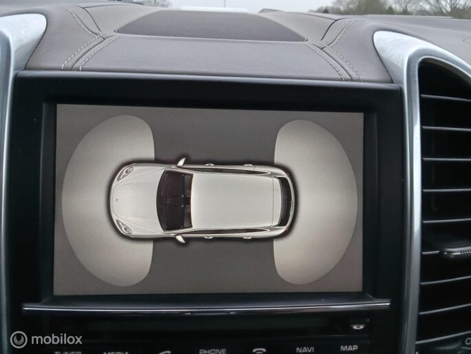 De nieuwste veiligheidssystemen komen in deze Porsche Cayenne samen. Het bandenspanningscontrolesysteem waarschuwt als de druk in een of meer banden te laag wordt.