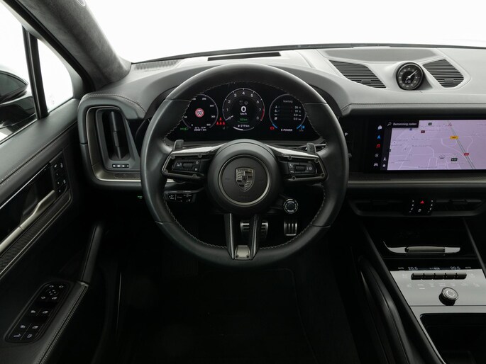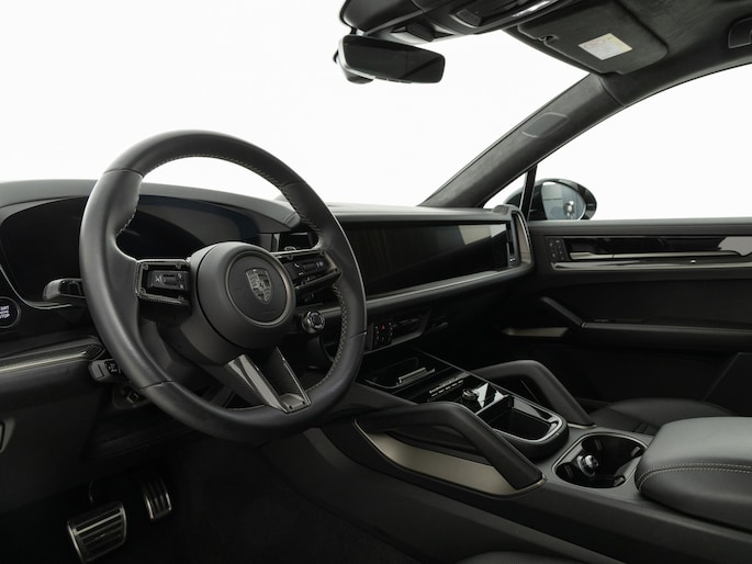 Deze Porsche Cayenne Turbo E-Hybrid Coupé in de kleur Chromite zwart metallic heeft slechts 25.021 kilometers gereden. De Porsche onderscheidt zich onder andere door unieke opties, zoals; SportDesign pakket in Turbonite gespoten, Porsche Ceramic Composite Brake (PCCB) met remzadels hoogglans zwart, Burmester® 3D High-End Surround Sound System en 22-inch RS Spyder Design wielen gespoten in Turbonite. Uiteraard is dit exemplaar nog verder te verfraaien door hoogwaardige accessoires van Porsche Tequipement.