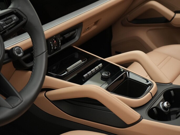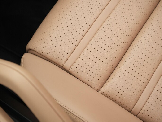 - Lederen interieur in tweekleurige combinatie, glad afgewerkt leder in zwart en Mojave Beige (BH)