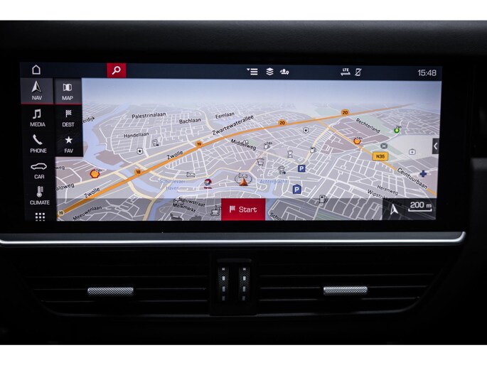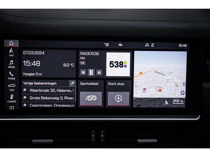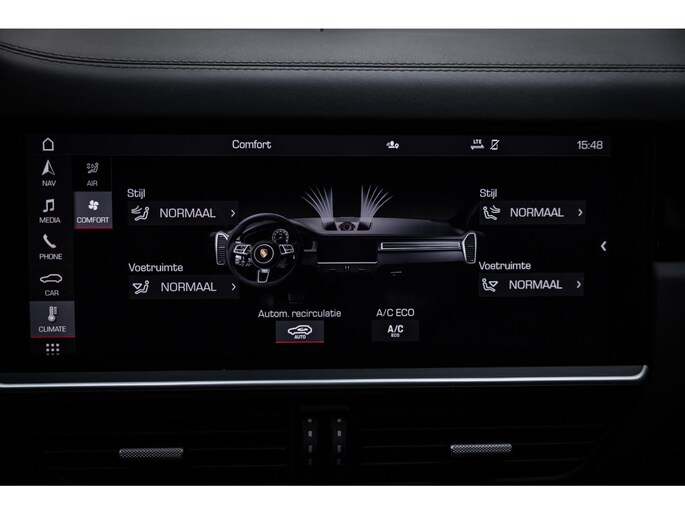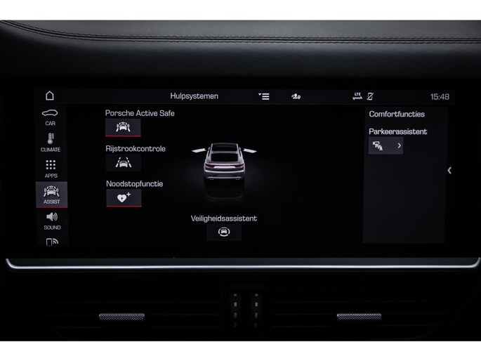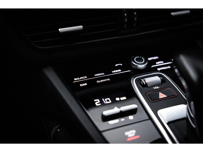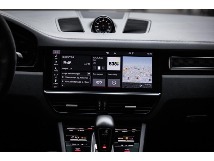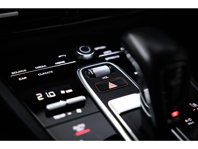 Het fraaie design van de hoge middenconsole met spiegelgladde hoogglans zwarte bedieningspanelen en het brede centrale touchscreen werkt intuïtief en prettig en biedt alle luxe waaronder stoelverwarming voor en achter, demper instellingen en een waanzinnig multimediasysteem. Dit laatste is uitgerust met het allerbeste op audiogebied. Het Burmester High End audiosysteem klinkt fenomenaal en is prachtig afgewerkt met RVS speakercovers. De cockpit, met zoals het Porsche betaamt, de analoge toerenteller precies in het midden wordt omgeven door twee LED schermen aan weerzijden die naar wens zijn in te richten en je werkelijk iedere info geven die je wenst. Er is adaptieve cruise control, LED Matrix koplampen met PDLS Plus, parkeersysteem met camera en heel praktisch is de elektrische trekhaak.
