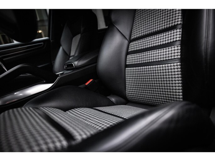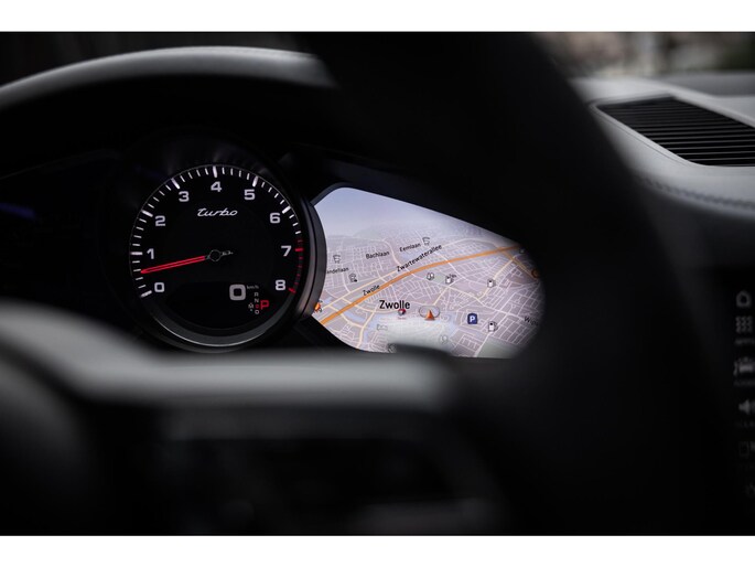 Het interieur is erg fraai en een knipoog naar vroege Porsches. In dit geval uitgerust met de 18-voudig elektrische verstelbare sportzetels in zwart Nappa lederen bekleding gecombineerd met de fraaie retro ruitbekleding in textiel, antraciet hemelbekleding in alcantara en de gave carbon sierlijsten. Het sportstuurwiel is uitgevoerd in alcantara. Sport Chrono is uiteraard present waardoor je niet alleen over het befaamde klokje bovenop het dashboard beschikt maar ook de draaiknop aan het stuurwiel voor rijprofielselectie. Alles is afgewerkt in leder en op topniveau qua kwaliteitsbeleving.