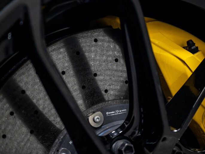 Porsche Ceramic Composite Brake (PCCB) met gele remklauwen