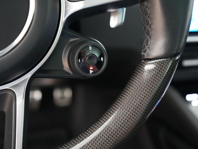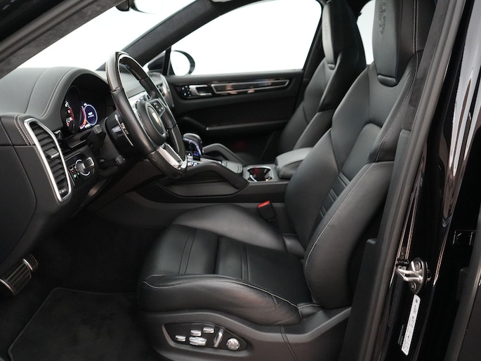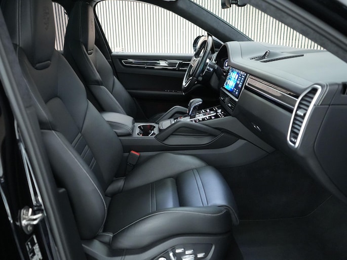 Ook het interieur laat zien dat dit geen standaard Cayenne is. De adaptieve sportstoelen bieden niet alleen perfecte steun, maar zijn ook voorzien van zowel stoelventilatie voorin als stoelverwarming voor en achter. Het carbon interieurpakket, de verlichte carbon dorpellijsten en het sportstuur in carbon benadrukken de sportieve luxe, terwijl de alcantara hemelbekleding en de contrasterende stiksels voor een exclusieve sfeer zorgen. Met het BOSE Surround Sound System geniet je van indrukwekkende audio, en dankzij de 4-zone airconditioning en interieurvoorverwarming zit je altijd in het perfecte klimaat.