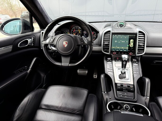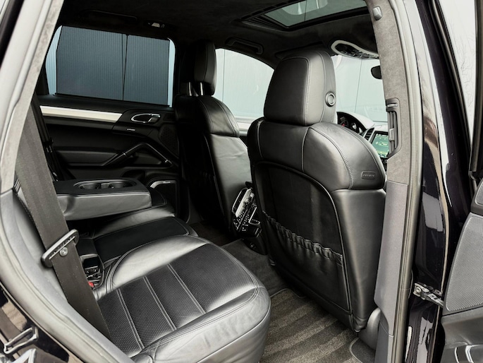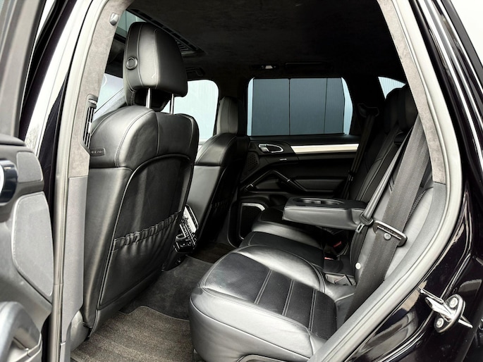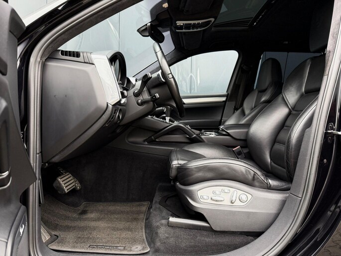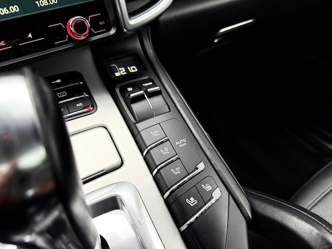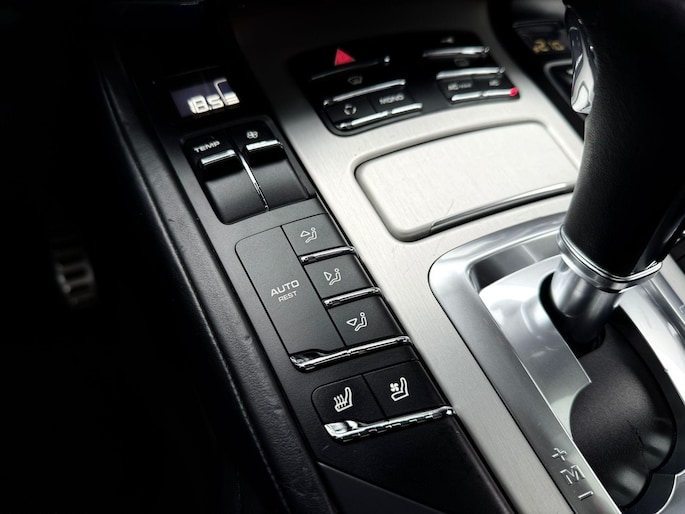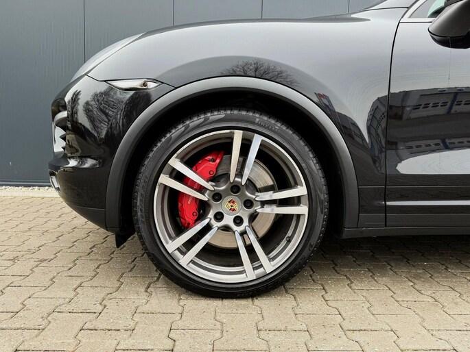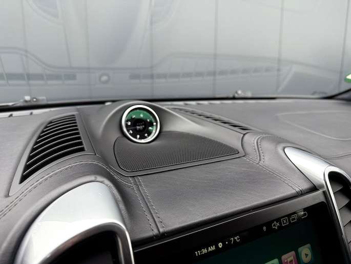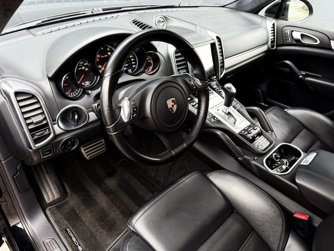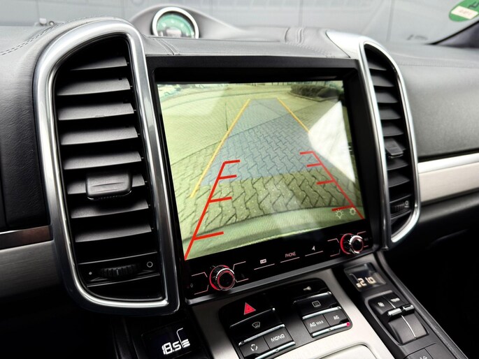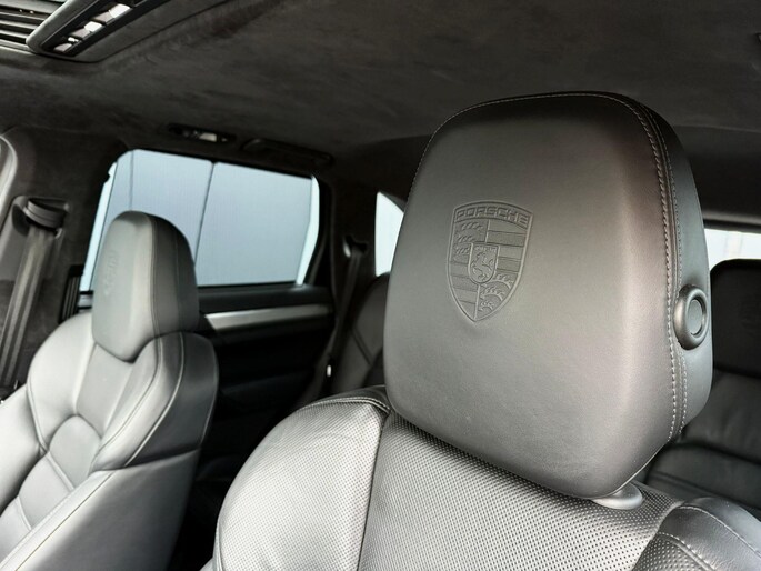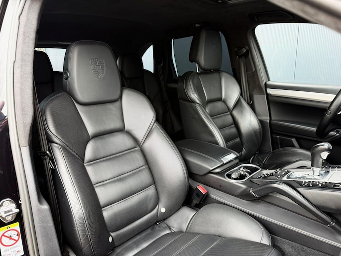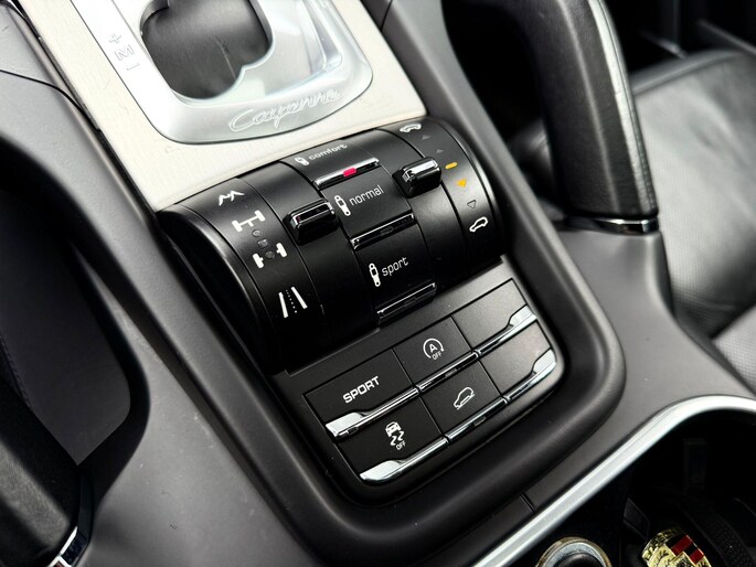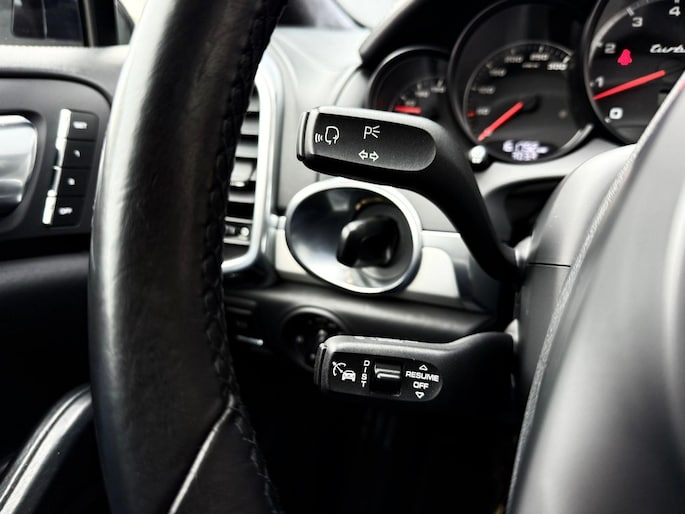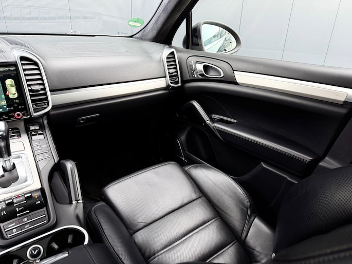 Dankzij hoogwaardige techniek en verschillende veiligheidssystemen, biedt deze Porsche Cayenne u optimale veiligheid en comfort tijdens iedere rit. In deze auto vindt u een benzinemotor en een automatische transmissie. Het lederen interieur voegt stijl en allure toe. Zit u goed? De stoelen zijn eenvoudig instelbaar dankzij de elektrische bediening met geheugen. Zelfs op de koudste dagen zorgt het verwarmbare stuurwiel, de voorstoelen en de achterbankverwarming ervoor dat u en uw passagiers het nooit koud hebben in deze luxueuze auto. Van binnen lijkt het allemaal uitermate ruim dankzij de vrije inval van daglicht via het elektrisch bediende glazen panoramadak. Een praktische extra is de elektrisch bedienbare achterklep die opent en sluit met een druk op de knop. Met de krachtige xenonverlichting rijdt u ontspannen in het donker. In deze Porsche profiteert u onder andere ook van: 21 inch lichtmetalen velgen, adaptief dempingsysteem, verwarmde ruitensproeiers en snelheidsafhankelijke stuurbekrachtiging.