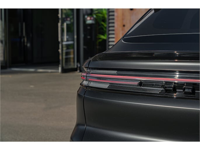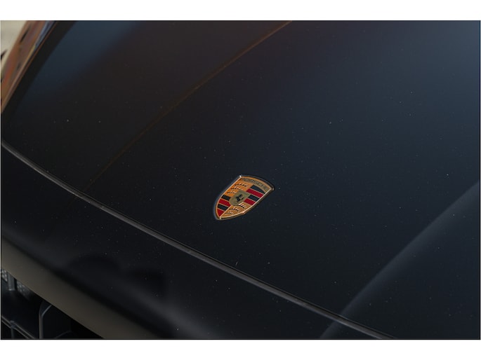 ‘PORSCHE’ logo in hoogglans zwart gespoten en modelaanduiding in exterieurkleur gespoten