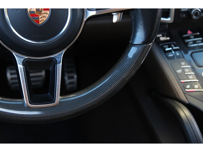 Afwerking: Hoogwaardige carbon inlegstukken, carbon keuzehendel en een carbon stuurwiel