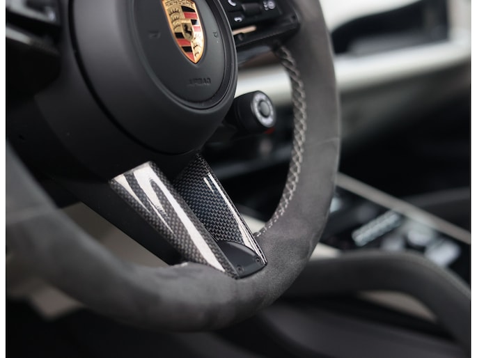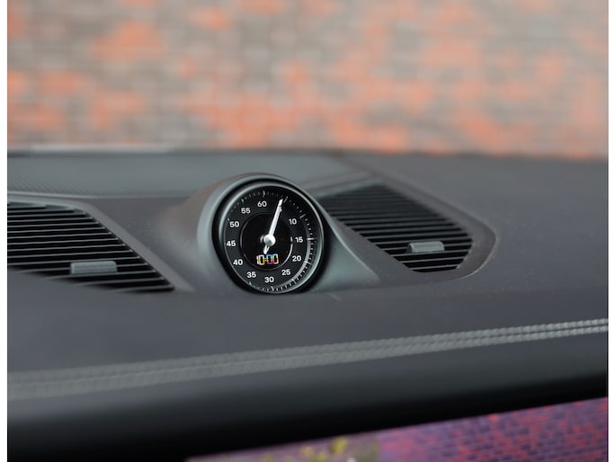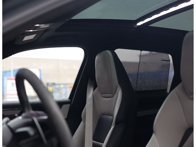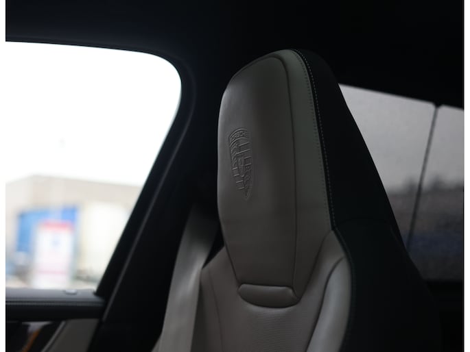Laten we beginnen met het exterieur. Voor dit exemplaar is gekozen voor een speciale Paint-To-Sample kleur: Nimbusgrijs metallic, oorspronkelijk een kleur van Audi. Het staat de Porsche erg goed, vooral in combinatie met het SportDesign-pakket met hoogglans zwarte details en de 22” Sport Design velgen. Extra mooi zijn de in kleur meegespoten wielkasten en buitenspiegels, waarmee dit exemplaar zich onderscheidt van de meesten.