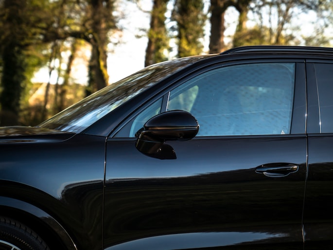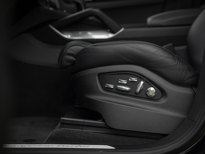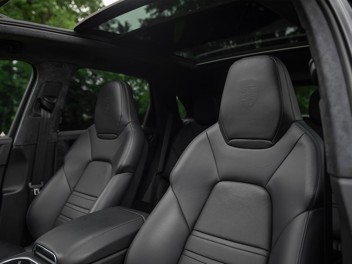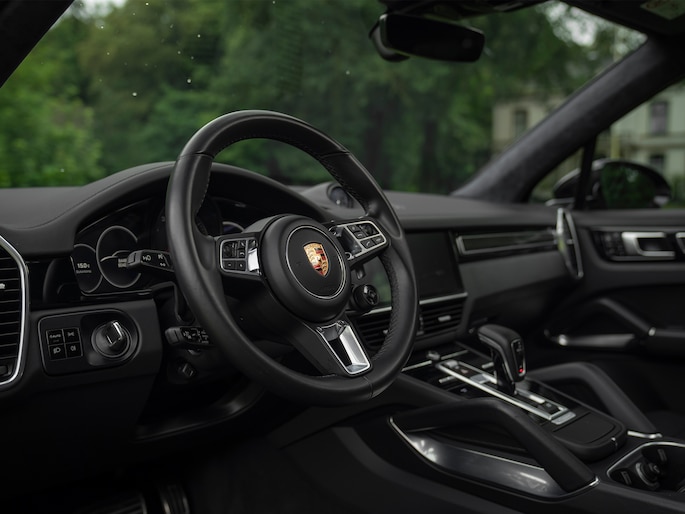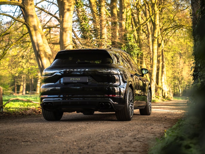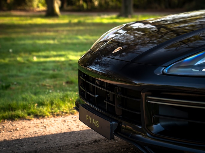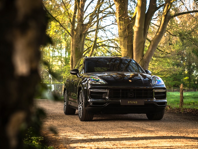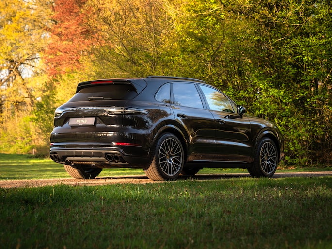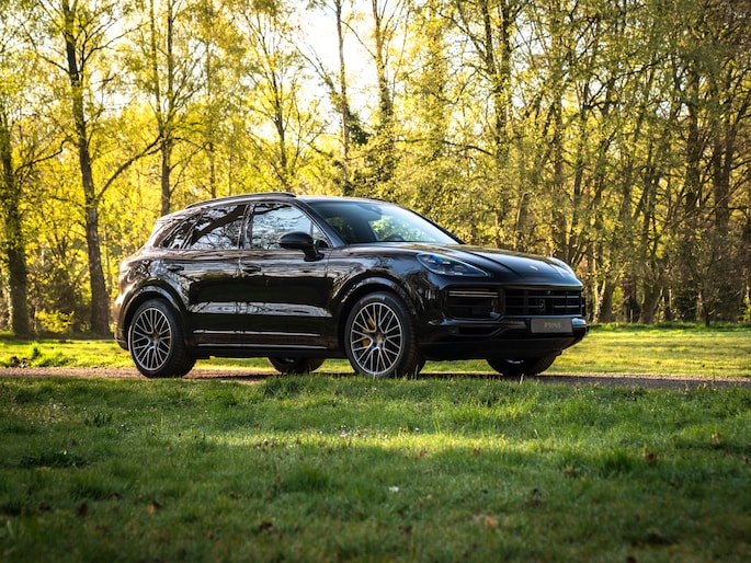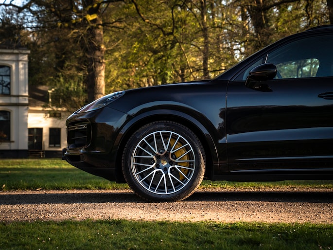 Bij de introductie van de Cayenne vroeg de wereld zich hardop af of sportwagenbouwer Porsche helemaal de weg kwijt was. Diezelfde wereld viel echter als een blok voor de mogelijkheid om elke dag in een performance-gedreven auto te kunnen sturen, inclusief het comfort van een volwaardige familiewagen. Inmiddels zijn we een paar generaties verder en kunnen we zeggen dat de Porsche Cayenne een doorslaand succes is gebleken. De evolutie van de SUV is duidelijk zichtbaar, maar hetzelfde geldt voor de 911-invloeden waarop de Cayenne traditiegetrouw leunt. De karakteristieke koplampen zijn in dit specifieke geval van het type LED-Matrix en beschikken over Porsche Dynamic Light System Plus voor een optimale, kristalheldere lichtbundel onder alle omstandigheden. Medeweggebruikers verblinden doet het systeem niet. En ook qua kleurstelling heeft uw voorganger het bescheiden gehouden: Diepzwart metallic gecombineerd met zwart gelakte exterieurdetails zoals de raamlijsten, dakrails en grille. Zwart zijn tevens de sporteindstukken van het uitlaatsysteem. Daarnaast doen Privacy Glass en het donkere glas voor de LED-achterlichten een duit in de mysterieuze uitstraling van deze Cayenne Turbo. Tot slot staat de Porsche op 21 inch grote Cayenne Exclusive Design velgen inclusief donkere inlay en erachter gele remklauwen die duiden op de indrukwekkende stopkrachten van de keramische remmerij.