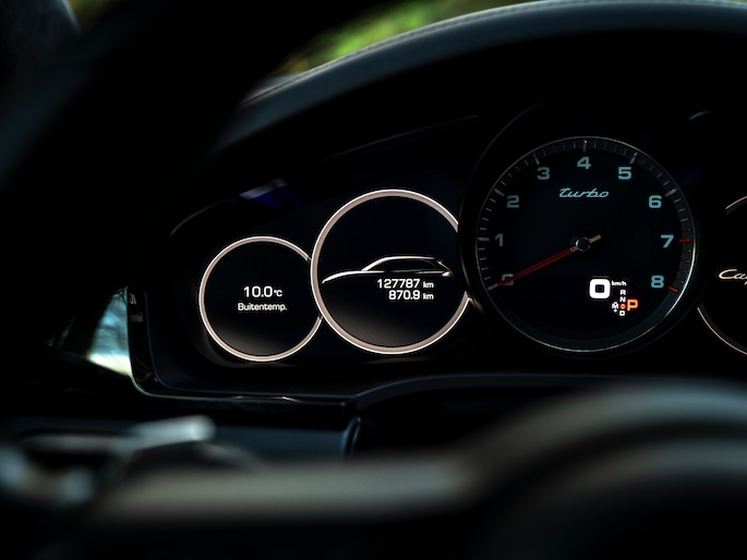 Een veelvoud aan digitale schermen en hulpsystemen bevestigt dat onze Porsche het moderne tijdperk omarmt en van alle gemakken is voorzien. Deze nog nét even meer dan anderen: het grote infotainmentscherm brengt bijvoorbeeld de functie van de 3D Surround View Camera haarscherp in beeld. Zaken als Bose Surround Sound, Apple CarPlay en Porsche Dynamic Chassic Control kunt u er eveneens mee bedienen. Het elektrische panoramadak en de adaptieve sportstoelen inclusief Comfort Memory pakket hebben zo hun eigen bedieningselementen voor een (opgeslagen) positie zo perfect als het uitrustingsniveau. Andere comfort verhogende voorzieningen zijn er in de vorm van Adaptive Cruise Control mét Lane Keep Assist + filehulp, rijstrookwisselhulp, LED Matrix-verlichting, PDLS+ en HomeLink. Quasinonchalant de portieren dichtslaan bij het in- of uitstappen wordt aangemoedigd dankzij soft-close. Echter, ondertussen doet deze Cayenne Turbo u écht wel wat. Het Sport Chrono pakket en de sound van het uitlaatsysteem inclusief sporteindstukken vertellen waarom…
