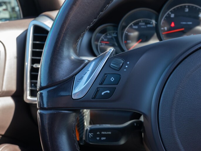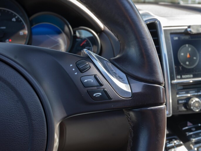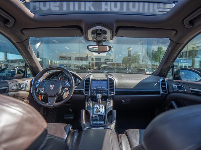 Mooie Porsche Cayenne 3.0 uitgevoerd in het stijlvolle ‘Diepzwart Metallic’ met een prachtig ‘Espresso’ interieur. Een schitterende configuratie met de belangrijkste opties zoals: panoramisch dak, afneembare trekhaak, PDLS koplampen en 18-wegs sportstoelen.