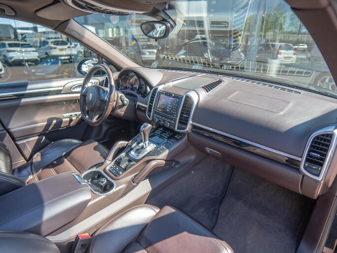 Beautiful Porsche Cayenne 3.0 finished in the stylish ‘Deep Black Metallic’ with a beautiful ‘Espresso’ interior. A stunning configuration with the most important options such as: panoramic roof, detachable tow bar, PDLS headlights and 18-way sport seats.