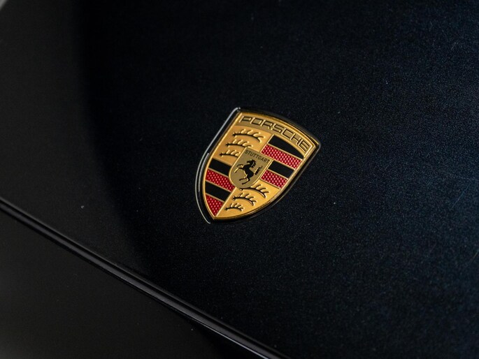 • PORSCHE logo hoogglans zwart gespoten, verval modelaanduiding