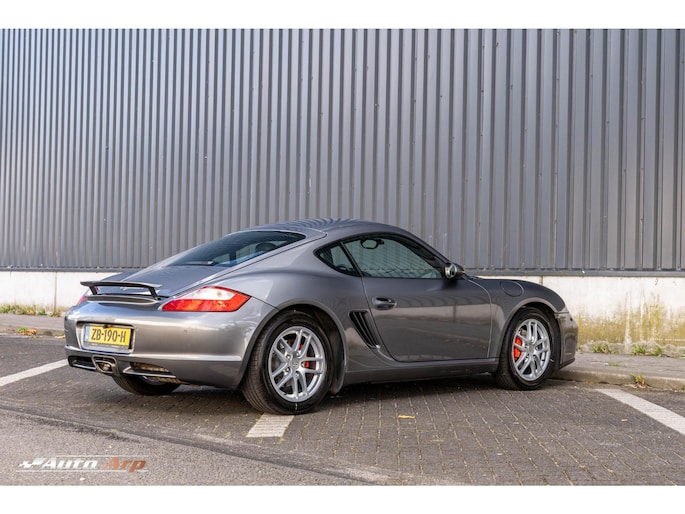 Op voorraad: een prachtige Porsche Cayman 2.7 Tiptronic uit 2007, uitgevoerd in de stijlvolle kleur Seal Grau Metallic met zwart lederen sportstoelen. Deze auto combineert de pure sportwagenbeleving van Porsche met het comfort van de betrouwbare Tiptronic automaat.
