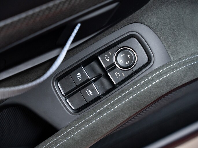 - Interieurdetails van carbon en alcantara, benadrukken het racekarakter.