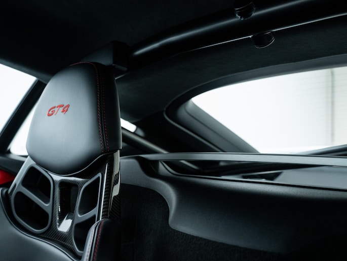 Middenbaan stoelen Race-Tex/zijwangen en hoofdsteunen leder zwart, hoofdsteunen met gestikt 'GT4' logo zilverkleurig