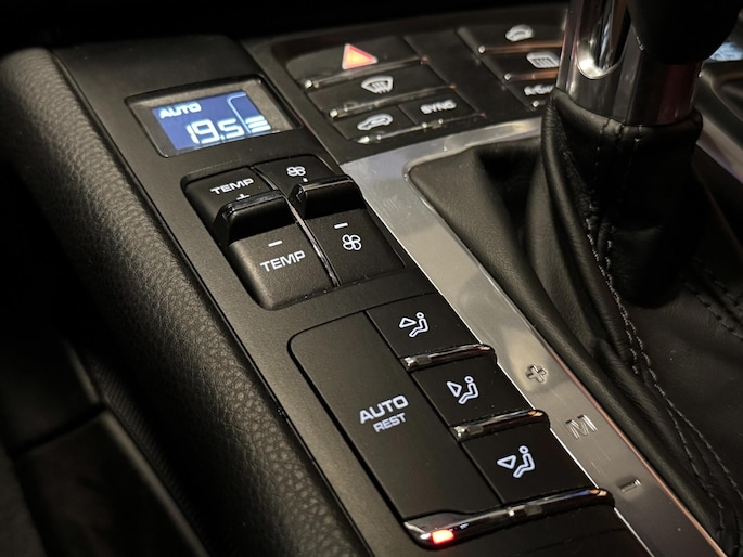 Je kunt het audio-installatiesysteem en het navigatiesysteem bedienen met de knoppen op het stuur. In een auto als deze kun je niet zonder electronic climate control, zodat de temperatuur altijd goed is. Parkeersensoren helpen je tijdens het in- en uitparkeren. Het hoort bij een intelligente auto als deze dat hij zelf in staat is om zijn omgeving in de gaten te houden. Dat doet deze Porsche met een automatisch inschakelbare verlichting en een regensensor. Nooit te snel, altijd constant: dat is het voordeel van de aanwezige cruise control. Wat je ook in deze auto kunt vinden zijn sportstuur met schakelpaddels, isofix-aansluiting, centrale deurvergrendeling met afstandsbediening en boordcomputer.