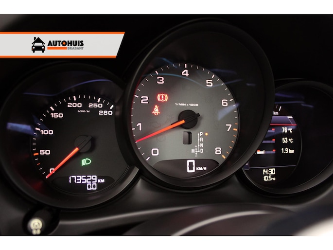 Combi-instrument met hoog resolutie 4,8 inch TFT kleurenbeeldscherm met weergave van versnelling voor PDK, service intervalweergave, buitentemperatuur weergave en diverse waarschuwingslampjes.