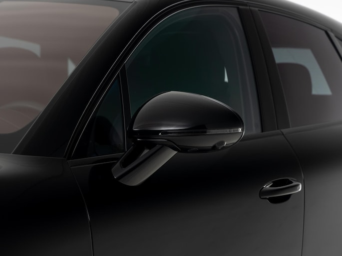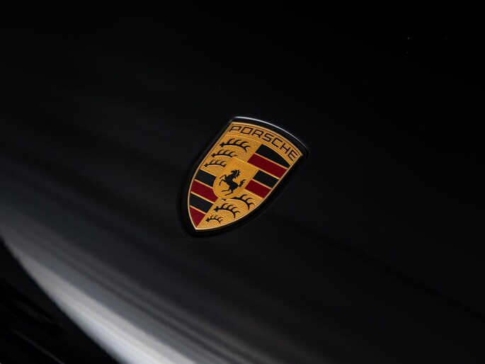 - 'PORSCHE' logo gespoten in hoogglans zwart en modelaanduiding gespoten in hoogglans zwart (0NC)