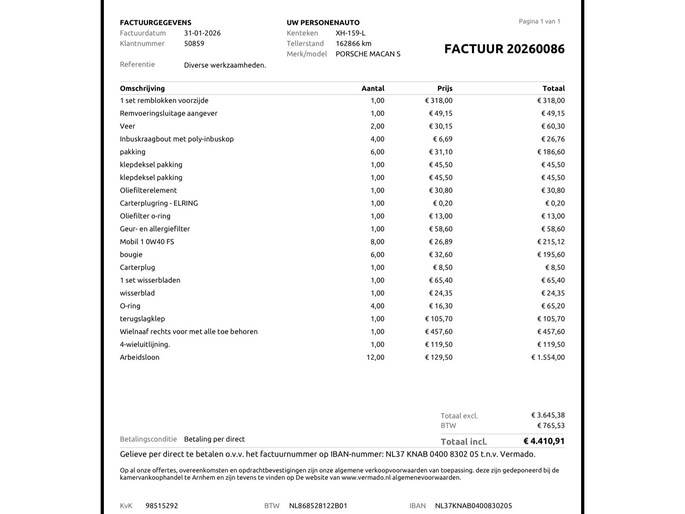 Daarnaast is er uitgebreid arbeidsloon verricht (ca. 12 uur) om alles correct te monteren en af te stellen. De totale onderhoudsbeurt had een waarde van €4.410,91.