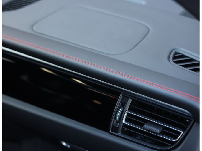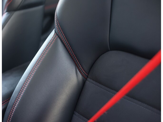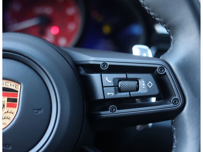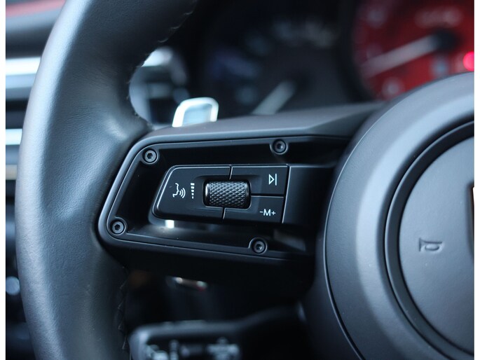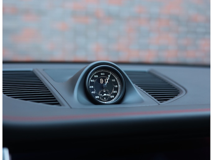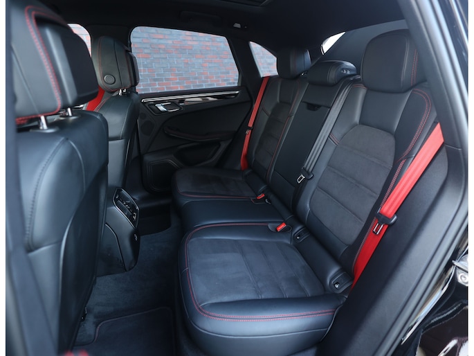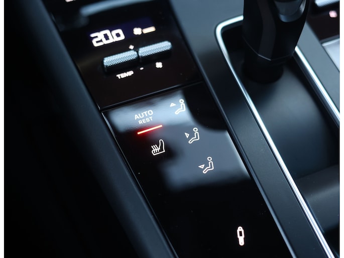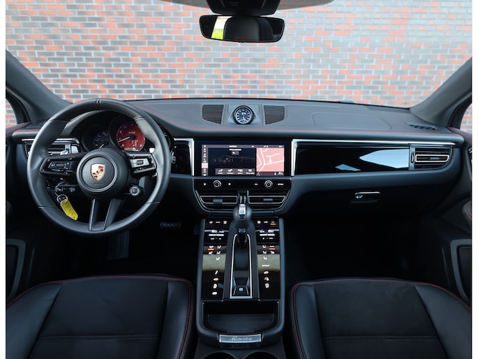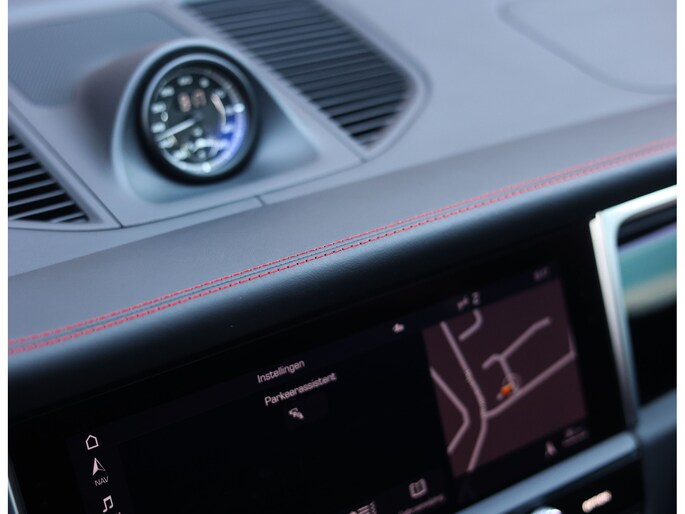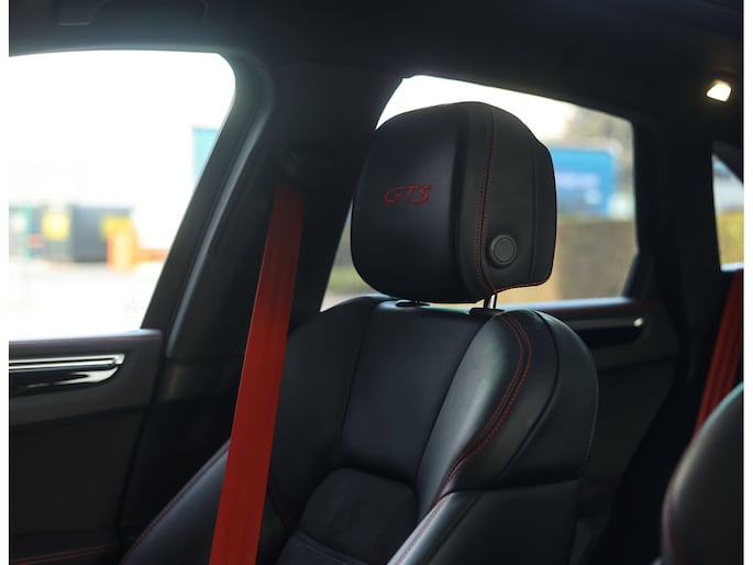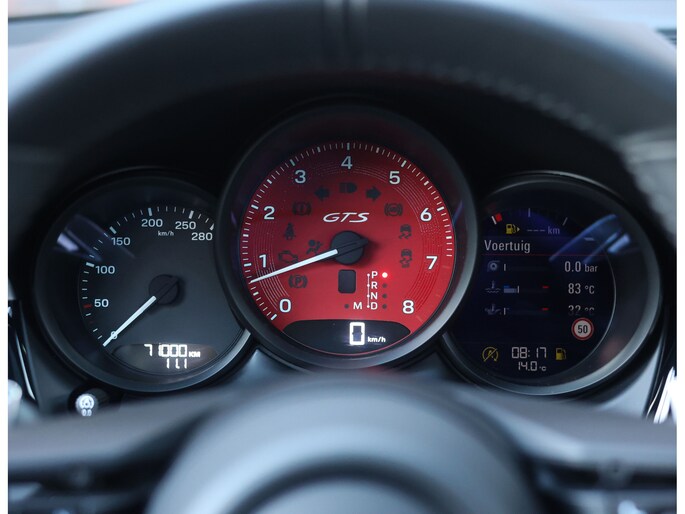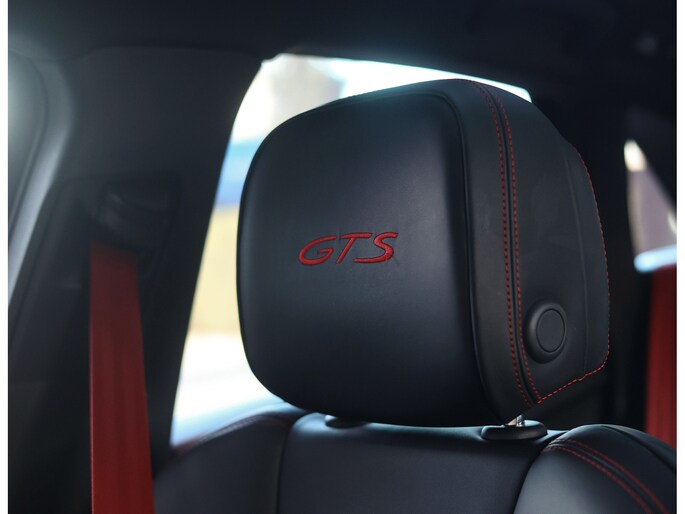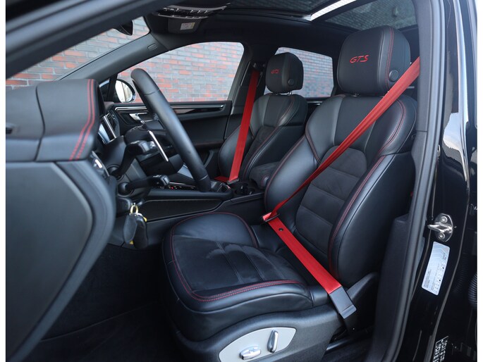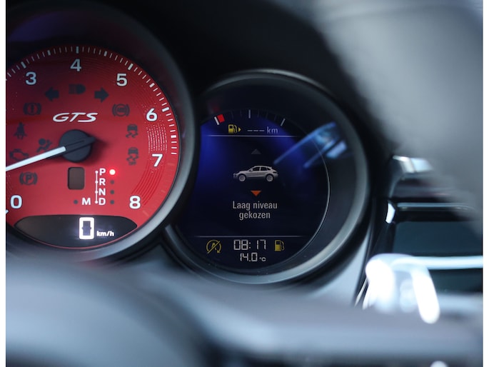 Hier vinden we namelijk zwart leder en Alcantara, versierd met rode stiksels en roodgestikte GTS-logo’s in de hoofdsteunen. Zeer sportief! De voorstoelen zijn volledig naar wens in te stellen en voorzien van memory en stoelverwarming. Uiteraard prijkt het bekende Sport Chrono klokje op het dashboard, exact zoals het hoort bij een Porsche. Het panoramadak geeft een exclusieve touch en zorgt voor een extra ruimtelijk gevoel.