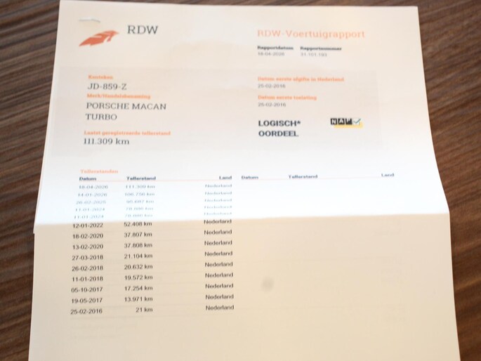Kilometerstand gecontroleerd