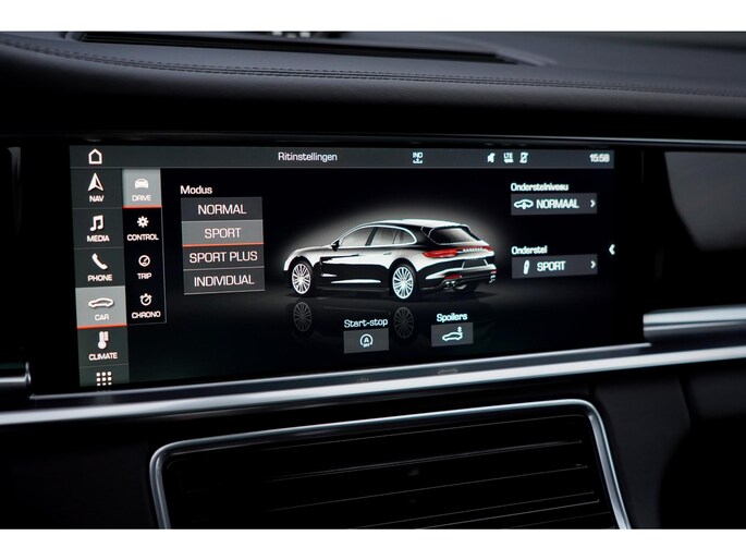 Kommaar-kommaar-kommaar, aldus de achteruitrijcamera. Iedere centimeter vrije ruimte komt haarscherp in beeld. Schadevrij inparkeren maar! Voor wie hoge eisen stelt aan geluid en akoestiek, is deze auto voorzien van een high performance audiosysteem. Ook is de auto voorzien van electronic climate control. De snelheid en interval van de ruitenwissers worden bij neerslag op maat aangestuurd via het regensensor. Met cruise control rijdt u rustiger en meer ontspannen, en bovendien zuiniger. Deze auto is voorzien van dashboard met spraakbediening, navigatiesysteem met harde schijf, sportstuur met schakelpaddels, dvd-systeem, automatisch dimmende buitenspiegels en houtinleg in het interieur.