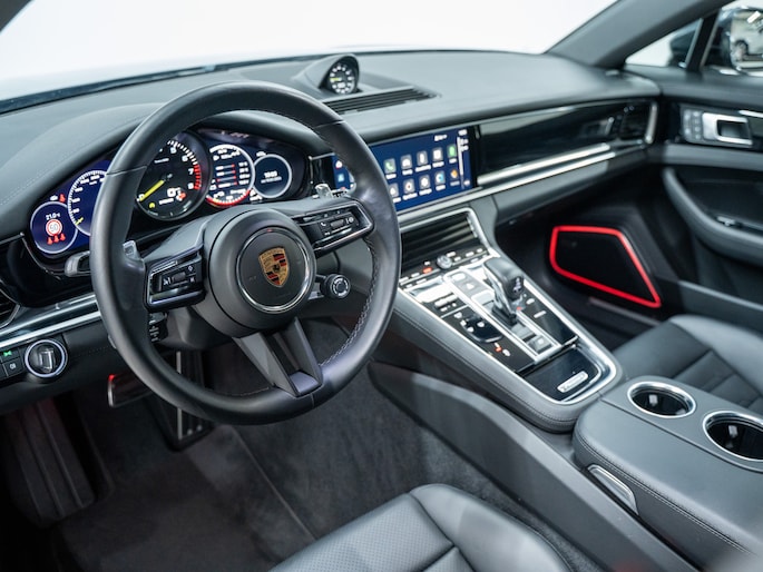 Het interieur van de Panamera 4S E-Hybrid Sport Turismo is een toonbeeld van luxe en comfort. Hoogwaardige materialen, prachtige afwerking en ergonomische stoelen dragen bij aan een eersteklas rijervaring. Geavanceerde technologieën, zoals het Porsche Communication Management-systeem, bieden een naadloze connectiviteit en infotainmentmogelijkheden. Het interieur is ruim en biedt voldoende been- en hoofdruimte voor zowel de bestuurder als de passagiers.