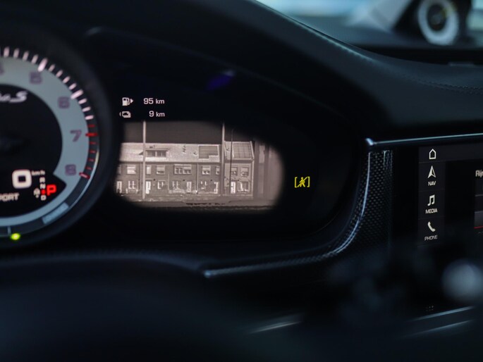 Zoals u mag verwachten van deze Porsche Panamera Sport Turismo is hij uitgerust met een reeks aan actieve veiligheidssystemen. Tijdens de rit hebt u altijd een bijrijder, want de verkeersbord-detectie leest de borden langs de weg en projecteert ze voor u op het instrumentarium. Met het Lane-keeping systeem gaat u nooit onbedoeld over de streep. Bij duisternis herkent de nachtzichtassistent objecten voor de auto zoals mensen en dieren. Het systeem waarschuwt zodat u een aanrijding kunt voorkomen. U bent mede dankzij head-up display, dodehoekdetectie, brake assist en bandenspanningcontrolesysteem steeds veilig onderweg.