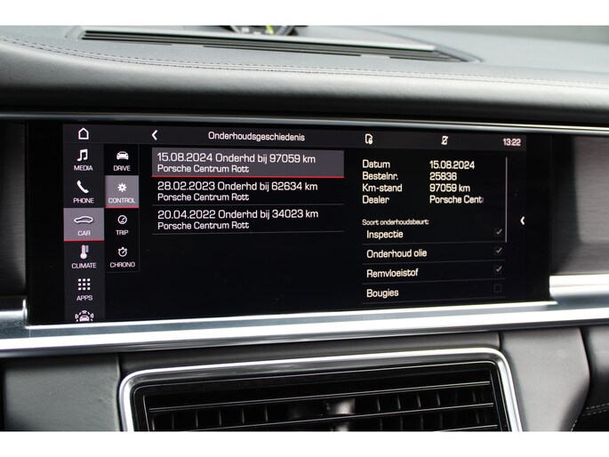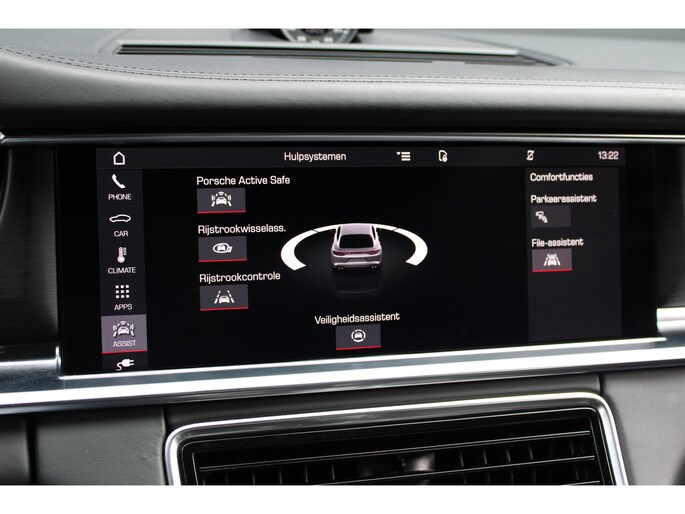 Aan boord van deze Porsche houden verschillende geavanceerde systemen voor u de weg in de gaten. Ze waarschuwen u voor noodsituaties en kunnen in een aantal gevallen ook zelf ingrijpen. Een belangrijke bijdrage aan de veiligheid onderweg levert de verkeersbord-detectie in deze Porsche. Het Lane-keeping systeem registreert permanent of u binnen de lijnen van de rijstrook blijft; dwaalt u onbedoeld af, dan waarschuwt het systeem en corrigeert de koers. Verder is deze auto uitgerust met dodehoekdetectie en bandenspanningcontrolesysteem.