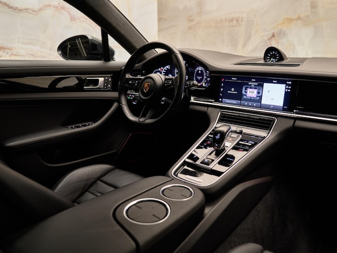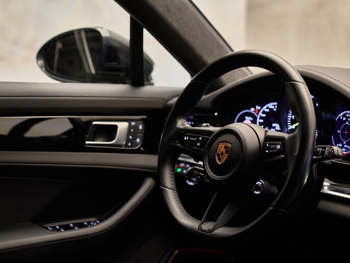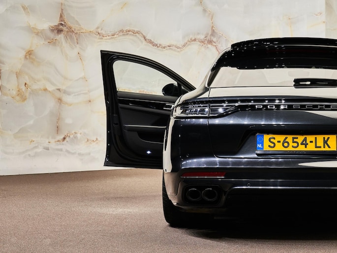 Dit betreft een uniek uitgevoerde Porsche Panamera Sport Turismo 2.9 4S E-Hybrid (560 pk). Kleur exterieur: Vulkaangrijs metallic (2H) en interieur: Standaard zwart, deels leder, met reliëf. (N1X) Deze auto heeft slechts 67.702 km gereden. Uiteraard is alle documentatie aanwezig. Voorzien van vele opties zoals:
