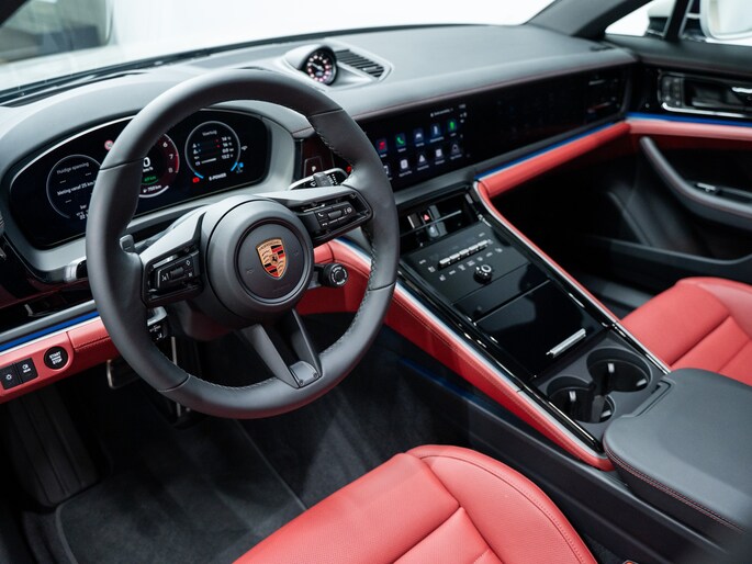 Het elegante en gespierde design benadrukt het sportieve DNA van de Panamera, met vloeiende lijnen en krachtige proporties die zowel stilstaand als rijdend indruk maken. Binnenin wordt de bestuurder omringd door een luxueus interieur waarin hoogwaardige materialen, verfijnde afwerking en geavanceerde digitale technologieën samenkomen. Alles is gericht op comfort, intuïtieve bediening en een gevoel van exclusiviteit, of het nu gaat om dagelijks woon-werkverkeer of lange, ontspannen reizen.