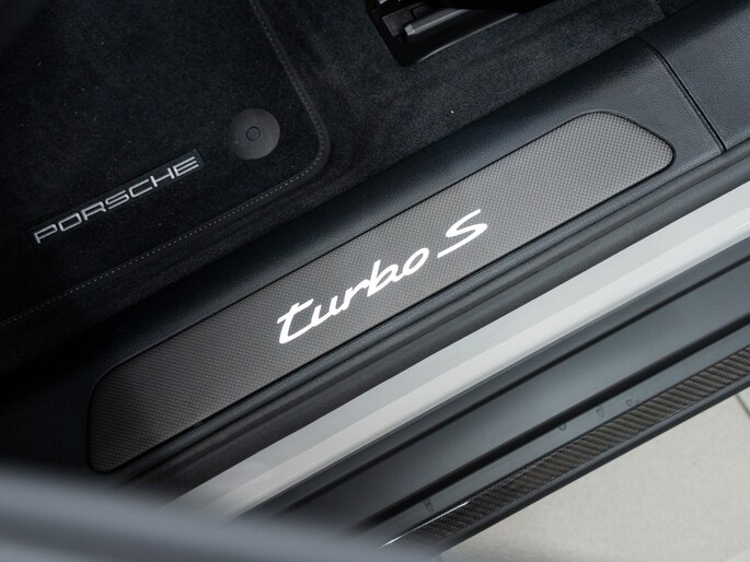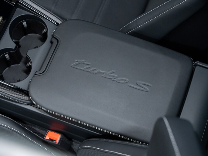 Porsche-wapen in Turbonite op motorkap; stuurwielwapen in Turbonite