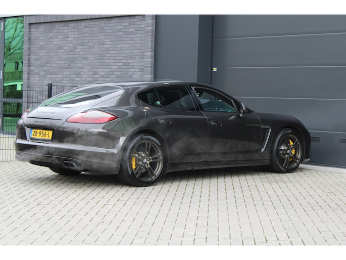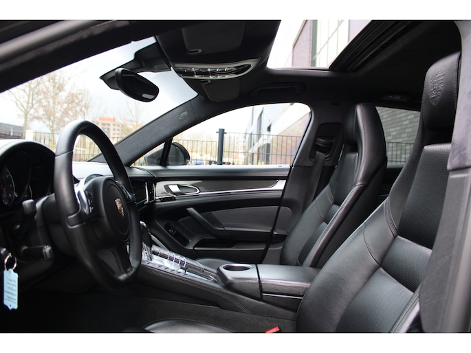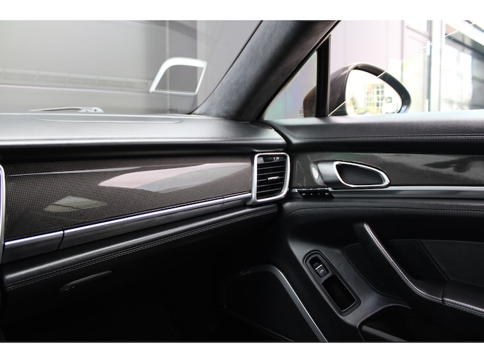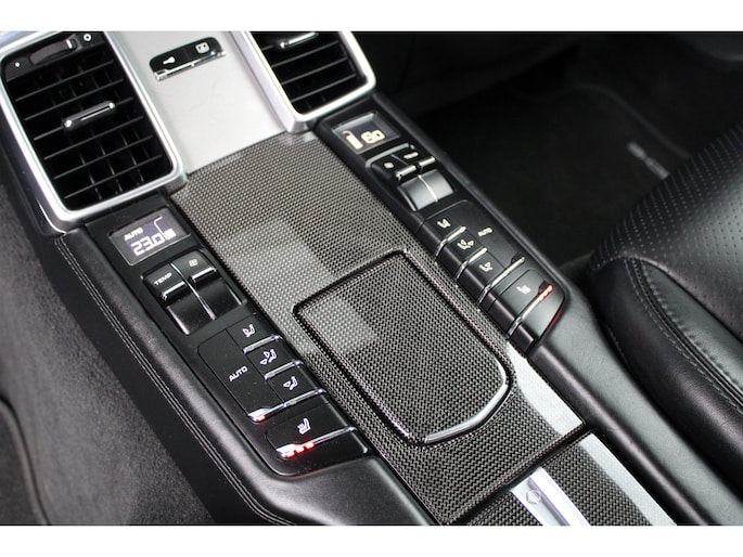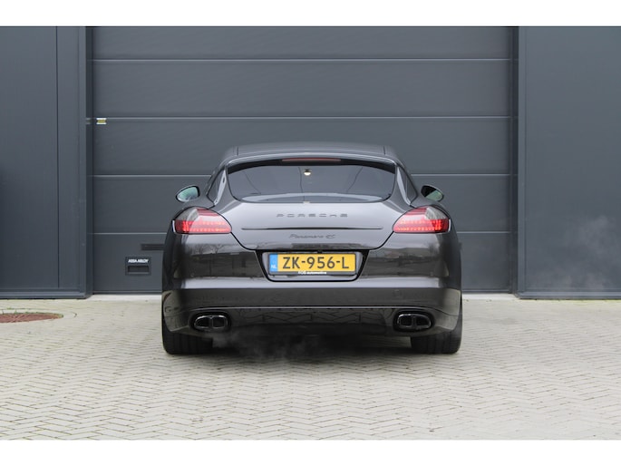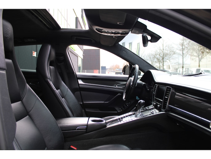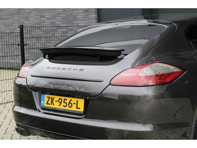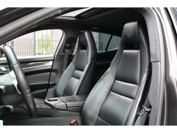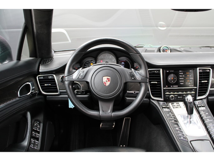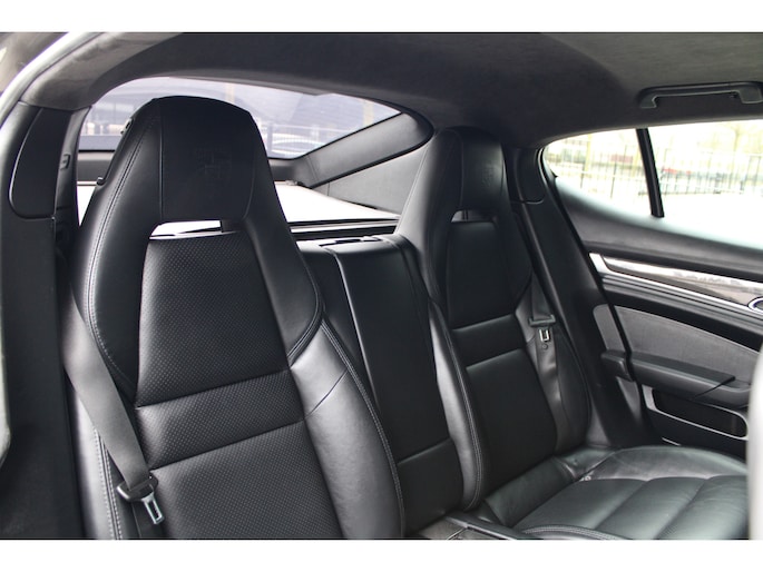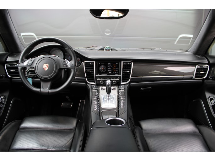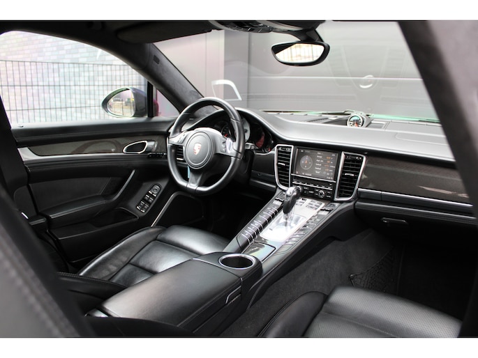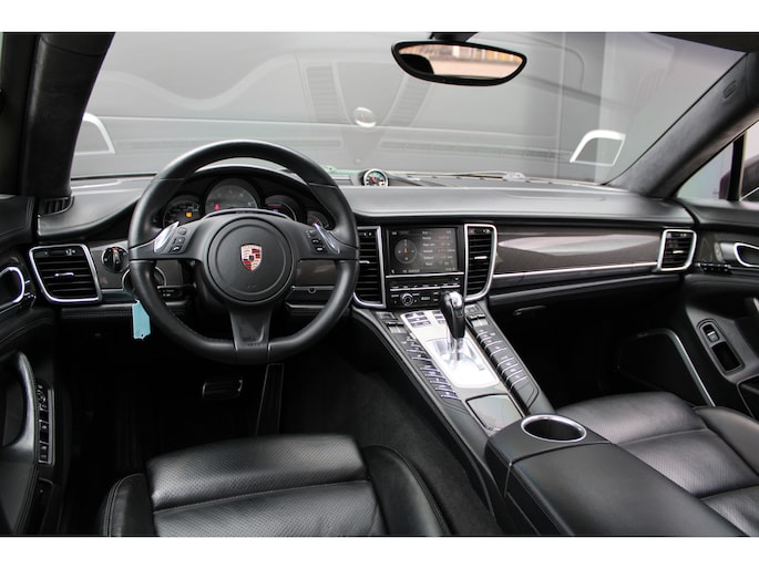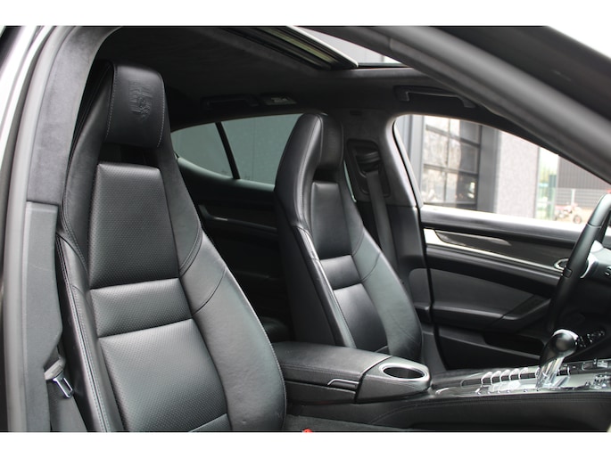 U rijdt gemakkelijk, comfortabel en zonder zorgen met deze Porsche Panamera. De uitstekende prestaties van deze auto komen van de achtcilinder benzinemotor en de automatische transmissie. Dat noemen ze nou een ruimtelijk effect: het elektrisch bediende glazen panorama dak, dat net zo gemakkelijk open en dicht gaat als de elektrisch bedienbare achterklep. En ondertussen het ware luxegevoel van het lederen interieur. Regen, wind, hagel, sneeuw? Als het buiten guur is, doet de stoelverwarming z'n weldadige werk! Een mooie, constante en solide ligging op de weg: dat is het voordeel van luchtvering. Ook op de achterbank kunnen passagiers zichzelf snel opwarmen dankzij de achterbankverwarming. Xenonverlichting zorgt voor een krachtige en heldere lichtbundel. Een milieusparende voorziening van deze auto is het start-stopsysteem. Ook halflederen bekleding, adaptief dempingsysteem en warmtewerend glas zijn aan boord.