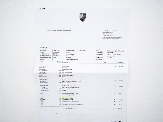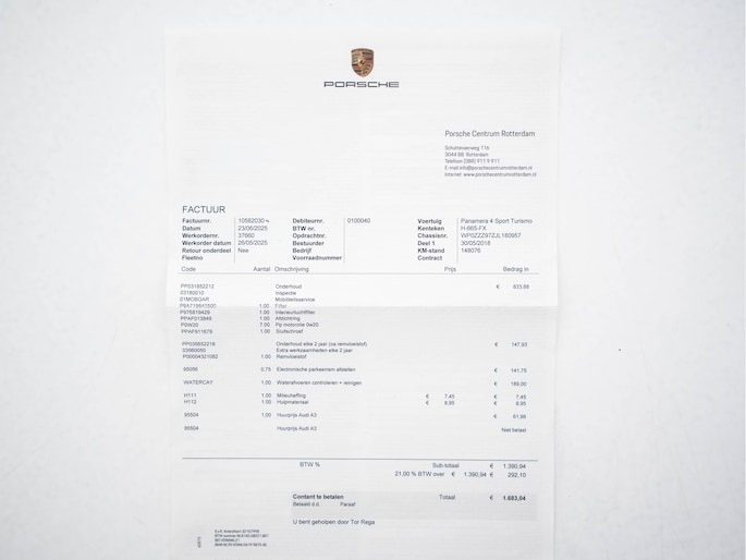 De Porsche Panamera Sport Turismo 3.0 4 met Sportchrono-Pack-Plus is een indrukwekkende en veelzijdige sportwagen met de ruimte van een shooting brake. Uitgevoerd in Jet Black Metallic met hoogwaardig vol lederen interieur in Saddle Brown, straalt deze Panamera pure klasse en sportiviteit uit. Voorzien van het Sport Chrono Pakket (inclusief launch control en stopwatch) en het Veiligheids-pakket (rijstrooksensor met correctie en verkeersbord detectie), biedt deze Porsche topprestaties én geavanceerde veiligheid. Het onderhoud is chronologisch uitgevoerd, met de laatste grote beurt bij 148.076 km.