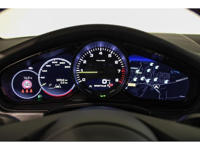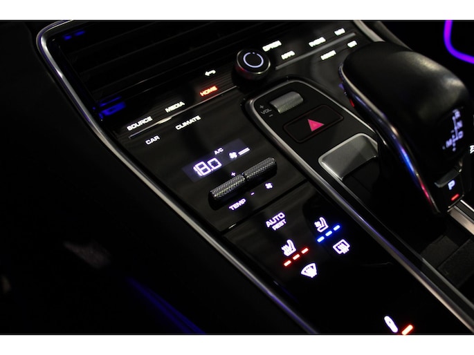 Ook het interieur is geen standaard werk. Hier tref je een zeldzaam mooi lederpakket, dat het geheel een luxe en uitnodigende uitstraling geeft. De afwerking is typisch Porsche: strak, hoogwaardig en functioneel – met oog voor elk detail. De zetels zijn voorzien van zowel verwarming als koeling. De gave interieurverlichting zorgt in de donkere dagen voor een luxe uitstraling.