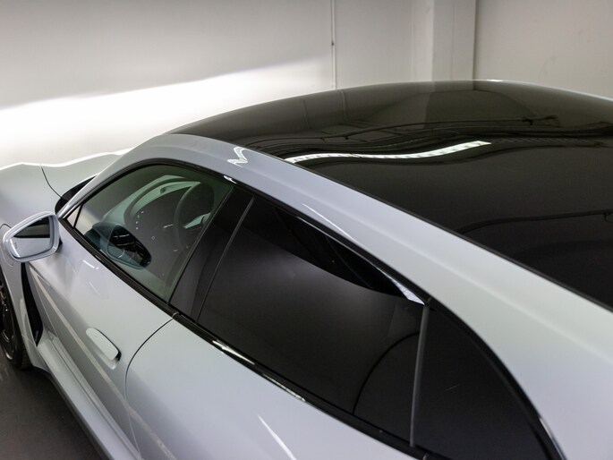 PORSCHE logo zwart mat en modelaanduiding zwart hoogglans gespoten