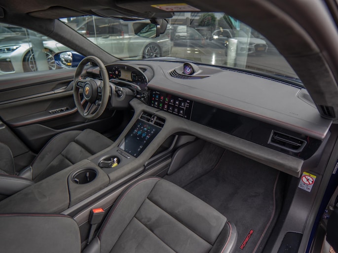 Kortom: een luxe, sportieve en perfect verzorgde Taycan Sport Turismo GTS met alcantara interieur in een schitterende kleurstelling.