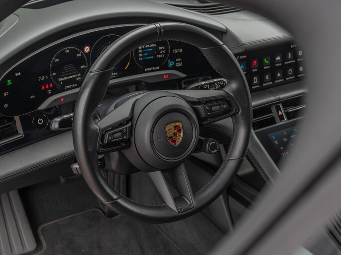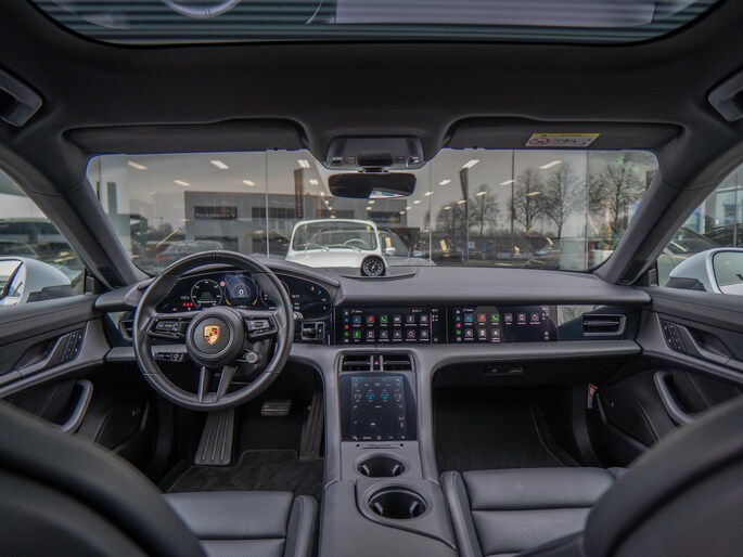 Porsche Taycan 4S Cross Turismo in de prachtige kleur IJsgrijs metallic, een perfecte combinatie van sportiviteit, luxe en dagelijks gebruiksgemak. Deze auto biedt indrukwekkende prestaties, een hoog comfortniveau en de kwaliteit die je van Porsche mag verwachten. De Taycan rijdt strak en stil, met een wegligging die zowel dynamisch als comfortabel aanvoelt. De auto is volledig dealer onderhouden en altijd met grote zorg behandeld. Daarnaast is hij zeer rijk uitgerust, met tal van luxe en moderne opties die elke rit bijzonder aangenaam maken. Een unieke en stijlvolle verschijning die klaar is voor nog vele zorgeloze kilometers. Een echte liefhebbersauto voor wie elektrisch rijden wil combineren met pure klasse en rijbeleving.