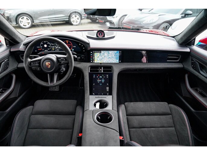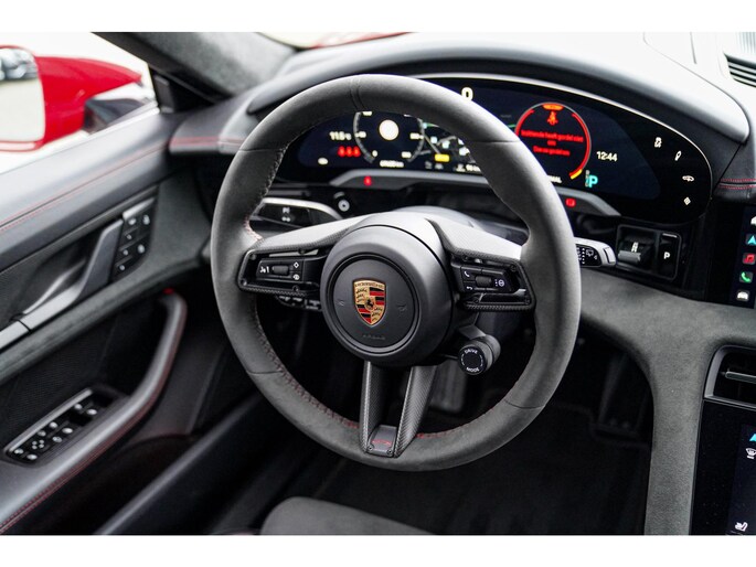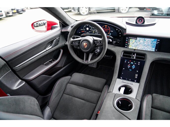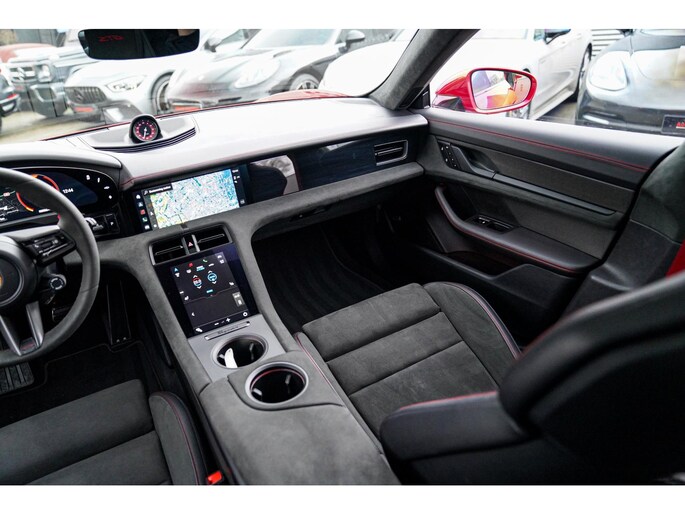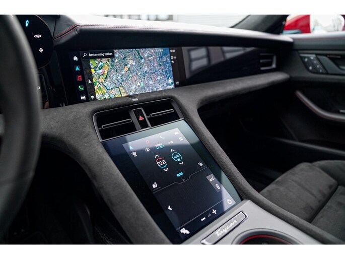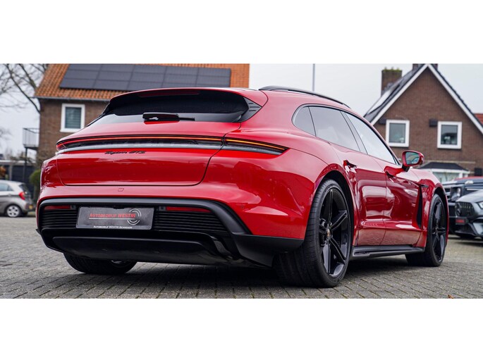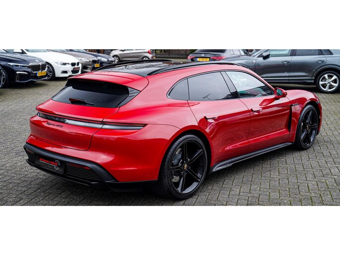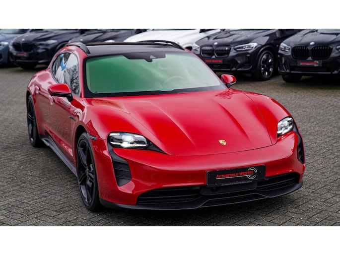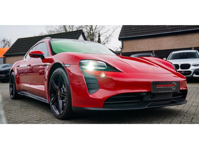 Nieuw binnen, deze schitterende, Karmijn rode, Porsche Taycan Sport Turismo GTS 93 kWh uit het jaar 2022. Echt een parel om te zien, uitgevoerd in deze prachtige kleur. Zowel van binnen als van buiten verkerend in zéér nette staat.